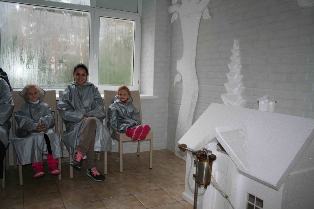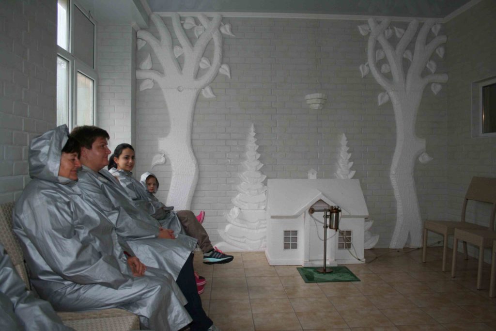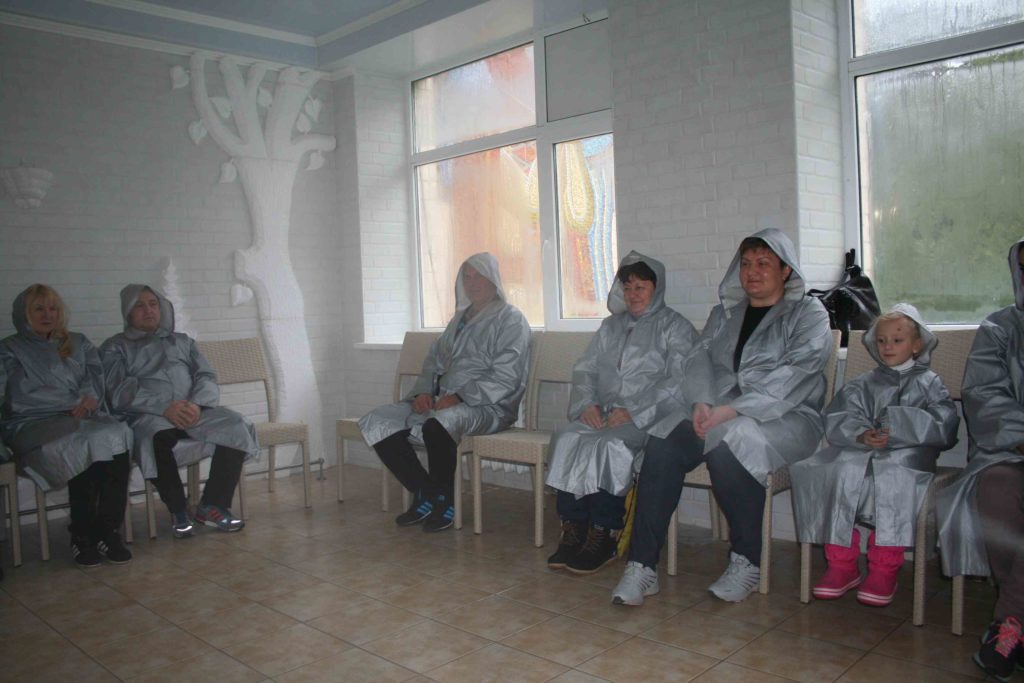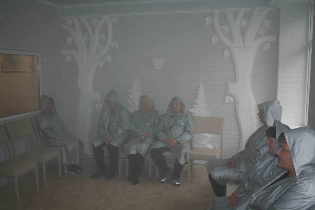 Солевую комнату недавно осовременили и обновили. Здесь одновременно могут находиться 10 человек в спецодежде.