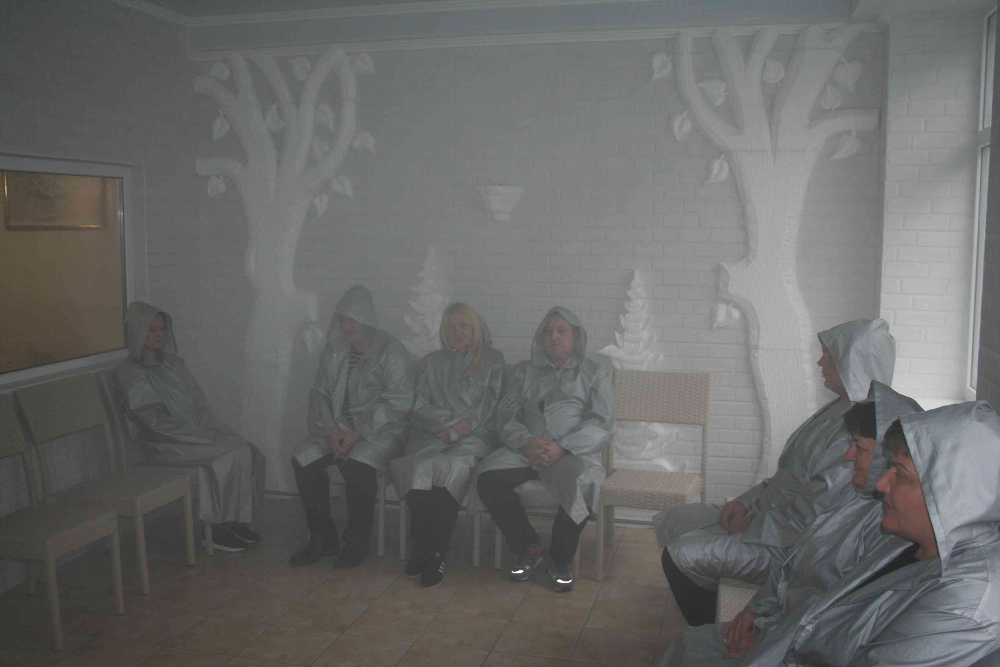 Солевую комнату недавно осовременили и обновили. Здесь одновременно могут находиться 10 человек в спецодежде.